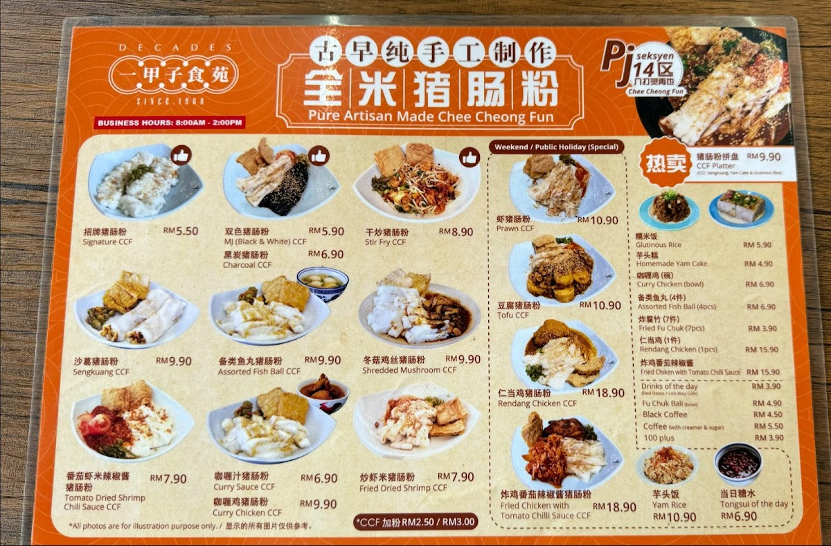 Welcome to 一甲子食苑 Decades Homemade Chee Cheong Fun, a nostalgic cafe nestled in Taman Gembira, Kuala Lumpur. This eatery is a delightful homage to traditional Chee Cheong Fun (CCF), boasting recipes passed down through generations. The atmosphere here is warm and inviting, reflecting the owner's passion for creating a homely dining experience.